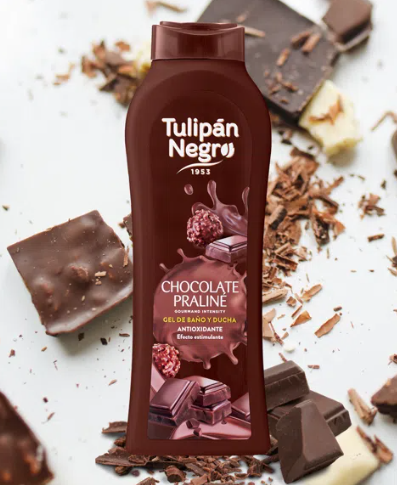 El gel de baño Tulipán NegroChocolate Praliné Temptation, incorpora en su composición elementos del Cacao ricos en antioxidantes, ayudando a activar la circulación. Junto con la Avellana tostada y caramelizada propia del Praliné, proporciona un efecto estimulante y nutritivo para la piel